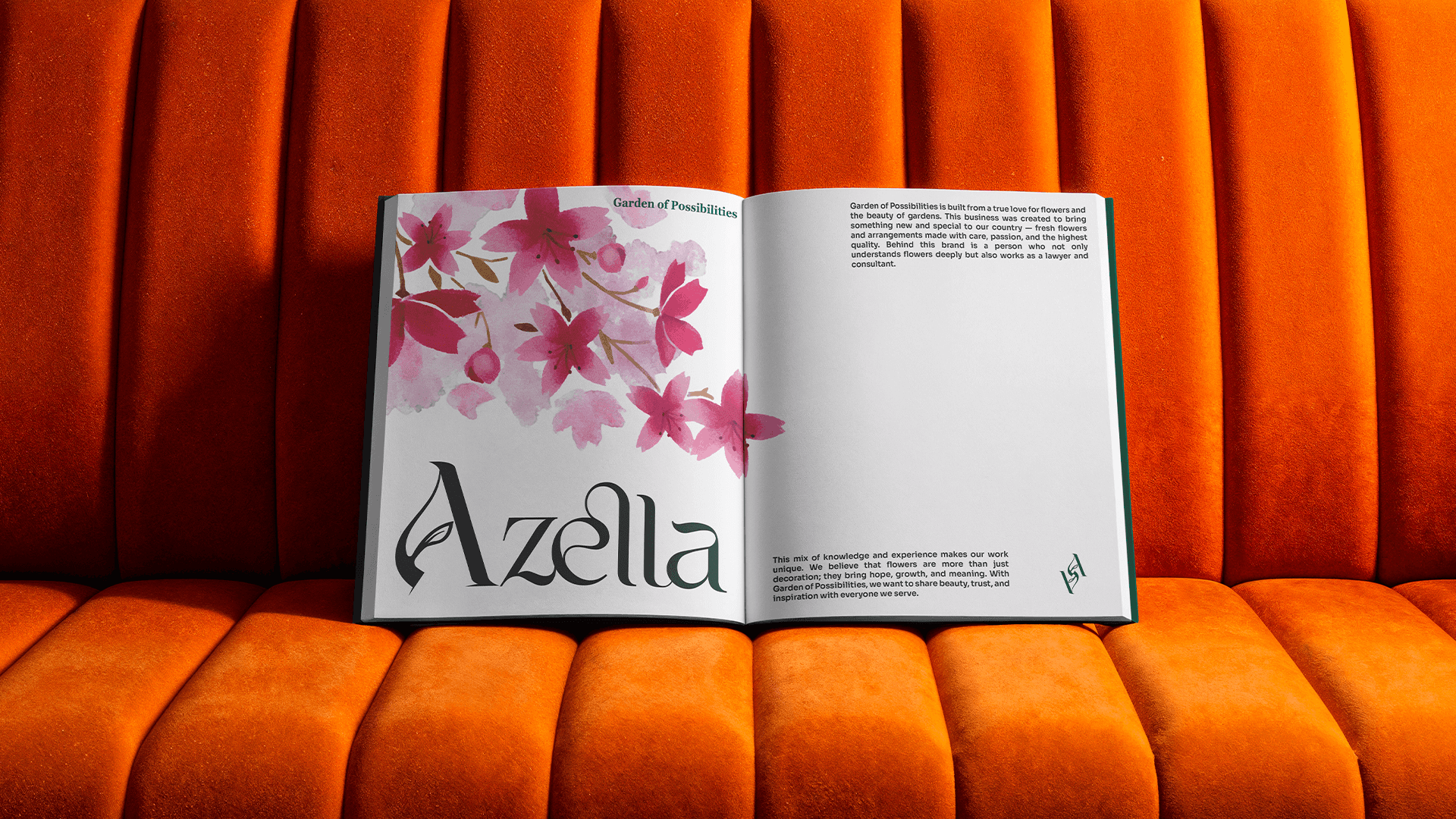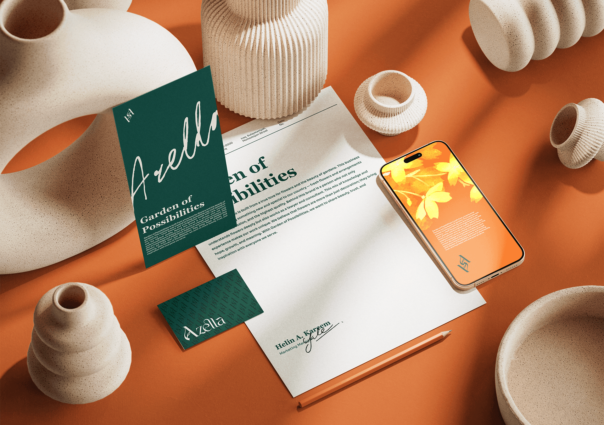 Azella is a natural flower business based in Kurdistan, known for creating beautiful and long-lasting floral arrangements. The brand needed a visual identity that could express its elegant, fresh, and nature-inspired spirit. We developed a refined and timeless identity by choosing deep, rich colors paired with soft natural tones, reflecting the beauty and authenticity of real flowers. A classic serif typeface adds a touch of tradition and trust, helping the brand feel graceful and professional.The complete visual identity was designed to give Azella a consistent and memorable presence across all platforms, capturing the heart of their natural flower craft in a simple and meaningful way.
