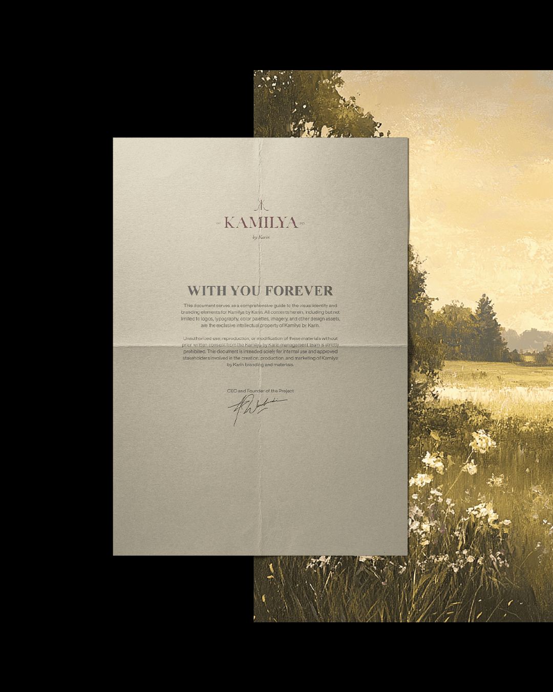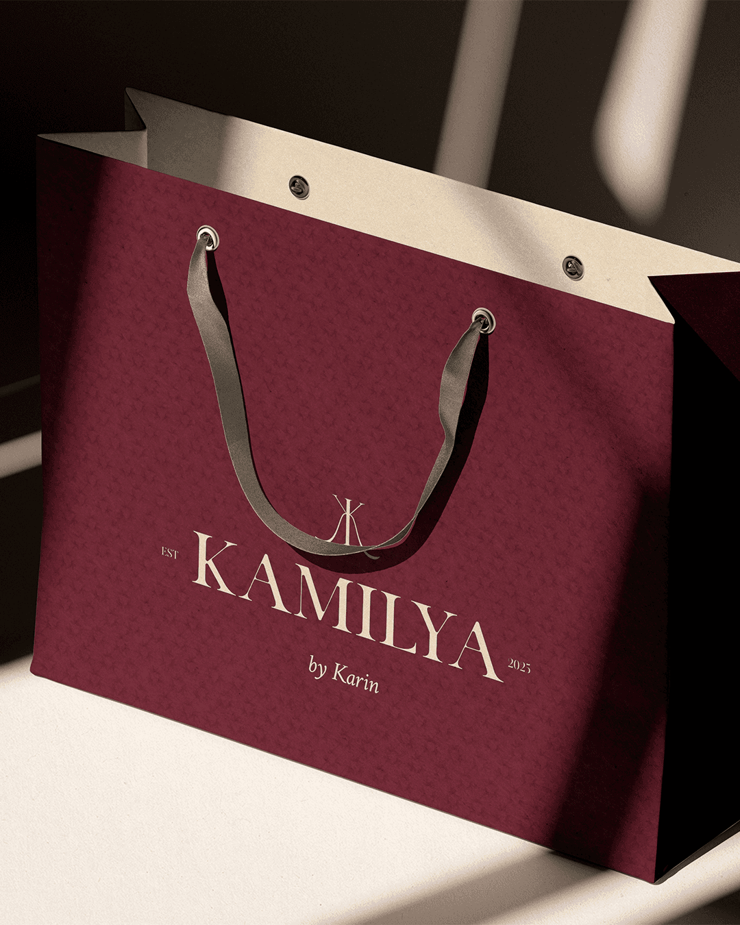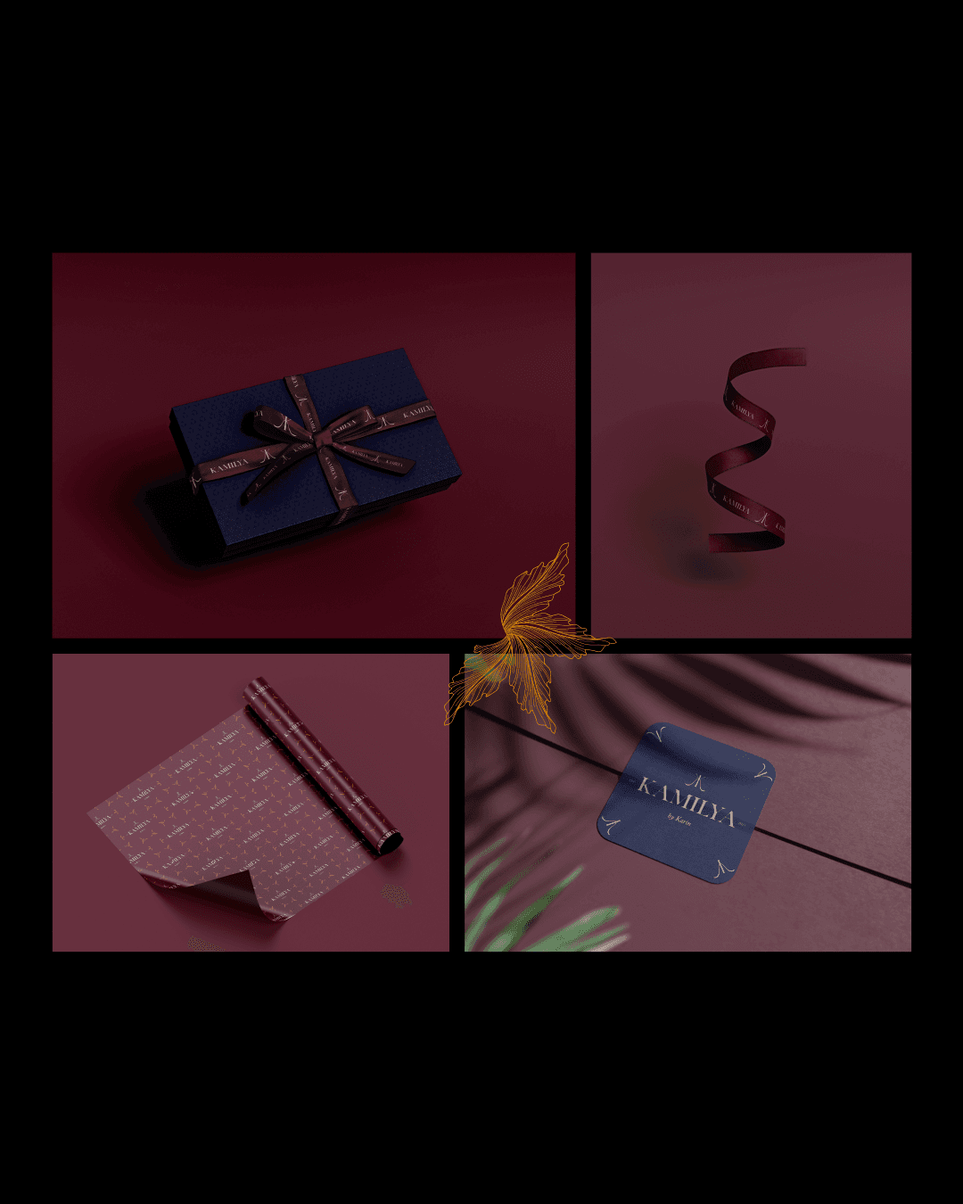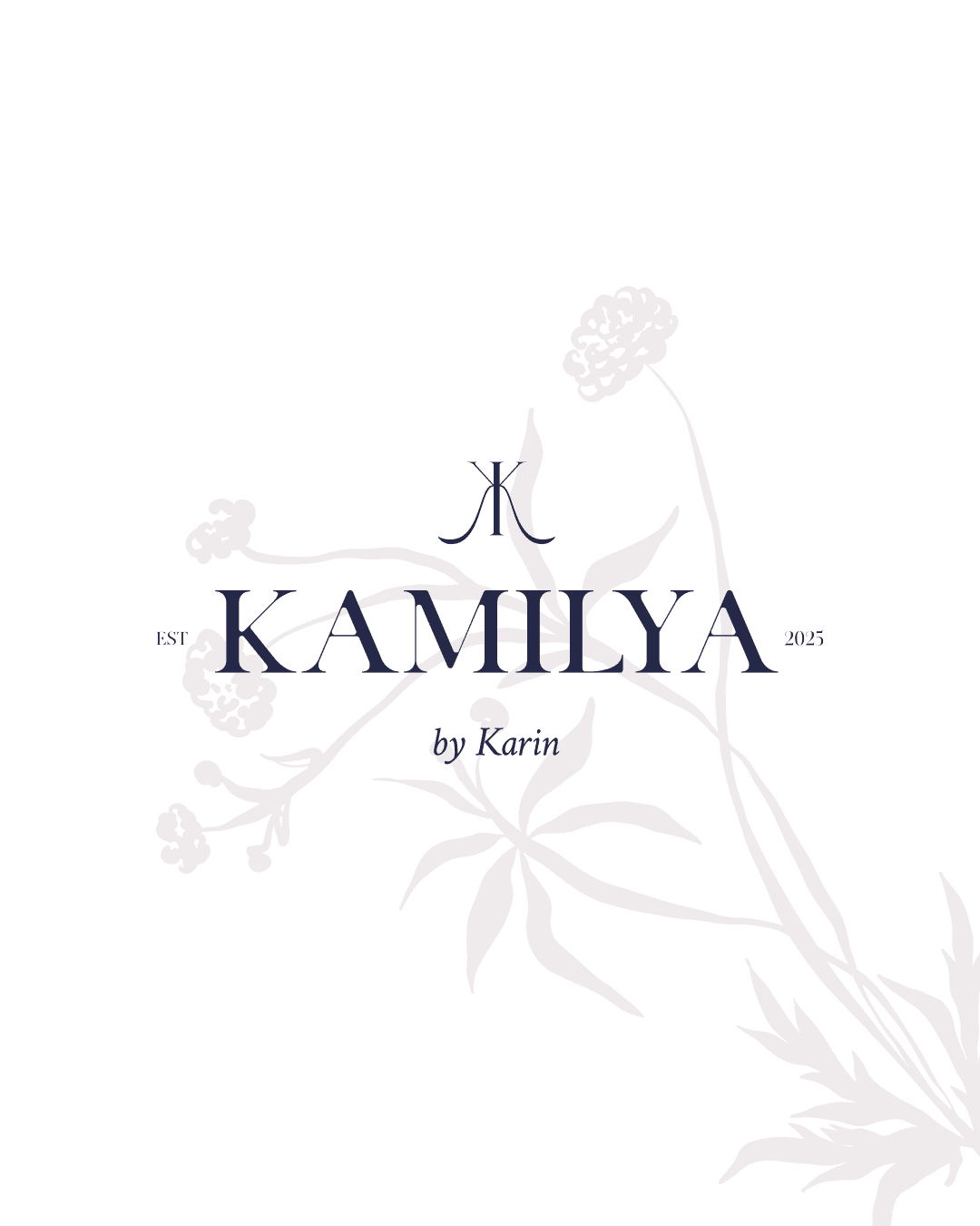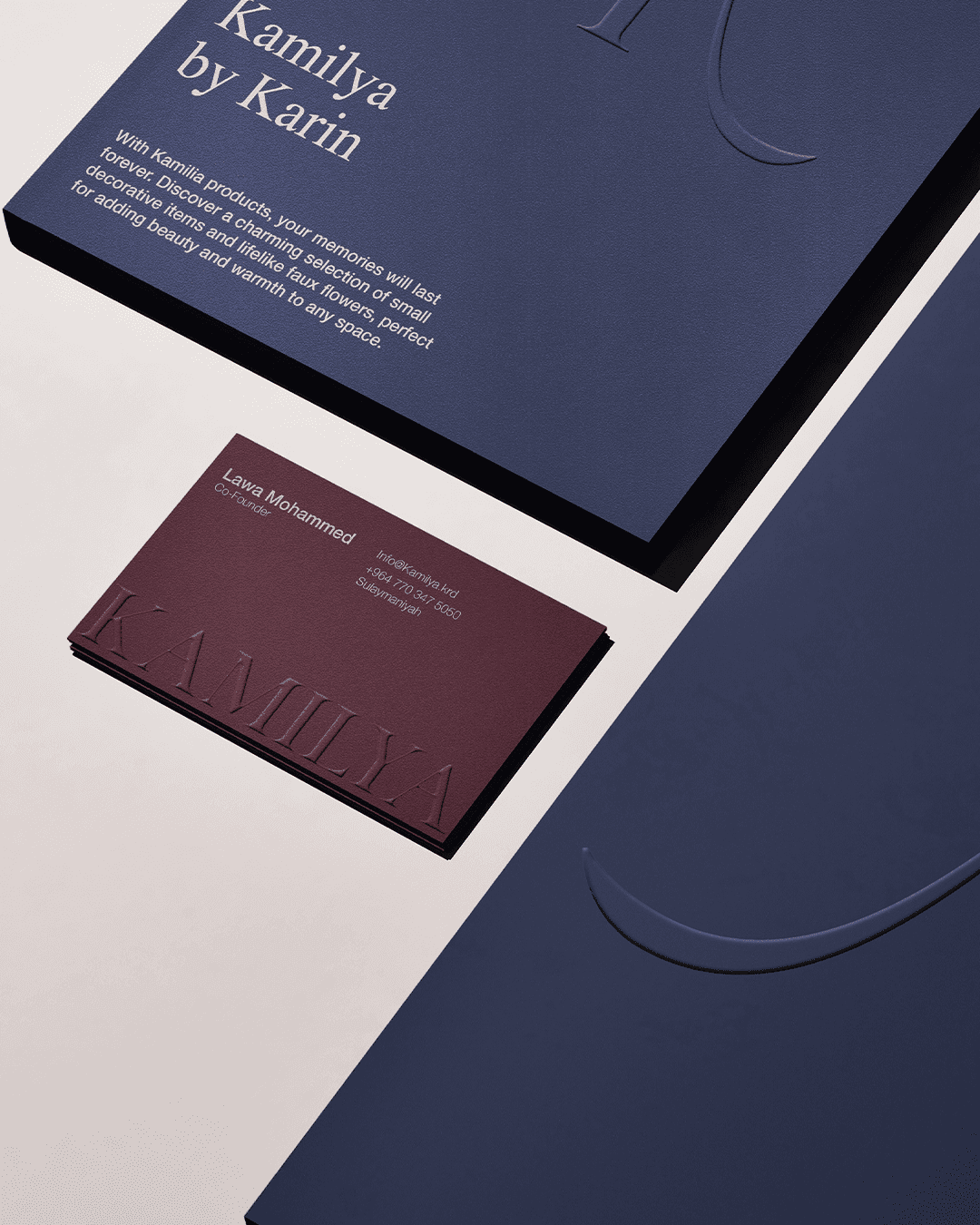 Kamilia is a brand where people can find beautiful, high-quality artificial flowers that look real and last forever. The goal of the visual identity was to make the brand feel classic, elegant, and luxurious. To achieve this, we used deep navy blue and rich burgundy colors, combined with a traditional serif typeface. These choices give the brand a timeless look and reflect the idea of long-lasting beauty.Our work focused on creating a visual identity that feels refined, memorable, and true to the spirit of Kamilia by Karin.