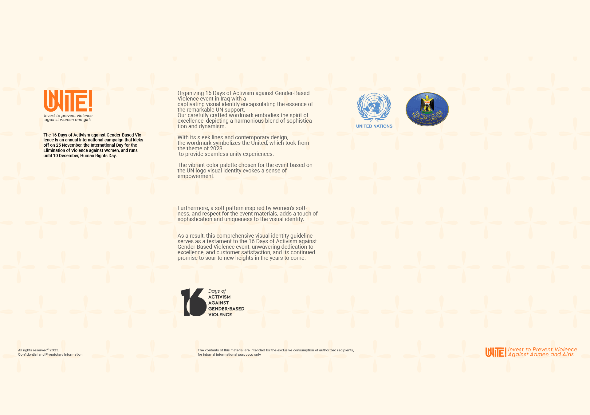 The 16 Days of Activism Against Gender-Based Violence is a global campaign held every year from November 25th, International Day for the Elimination of Violence Against Women to December 10th, Human Rights Day. Its purpose is to raise awareness, support women and girls, and advocate for ending all forms of gender-based violence. As Click Iraq, we stood behind this mission by promoting #SafeDigitalClicks for women and girls in Kurdistan and around the world.For this project, I designed the full event identity from scratch for the Iraqi Government and UNFPA. We began by selecting the name of the event, followed by crafting a complete visual identity system including logo concepts, color palette, typography, and pattern design. After defining the core look, we extended the identity to all event materials such as promotional products, printed collaterals, screen visuals, signage, and more.Managing this event from start to finish, beginning with the name and continuing through the entire execution, was a valuable experience that opened a new perspective for me and remains one of the projects I will always remember.